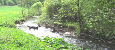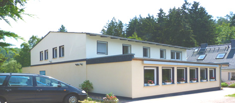 In medias res: Unser Firmensitz mit modernem Laborgebäude im idyllischen Scheidertal ist umgeben von Bächen Wald und landwirtschaftlichen Nutzflächen.